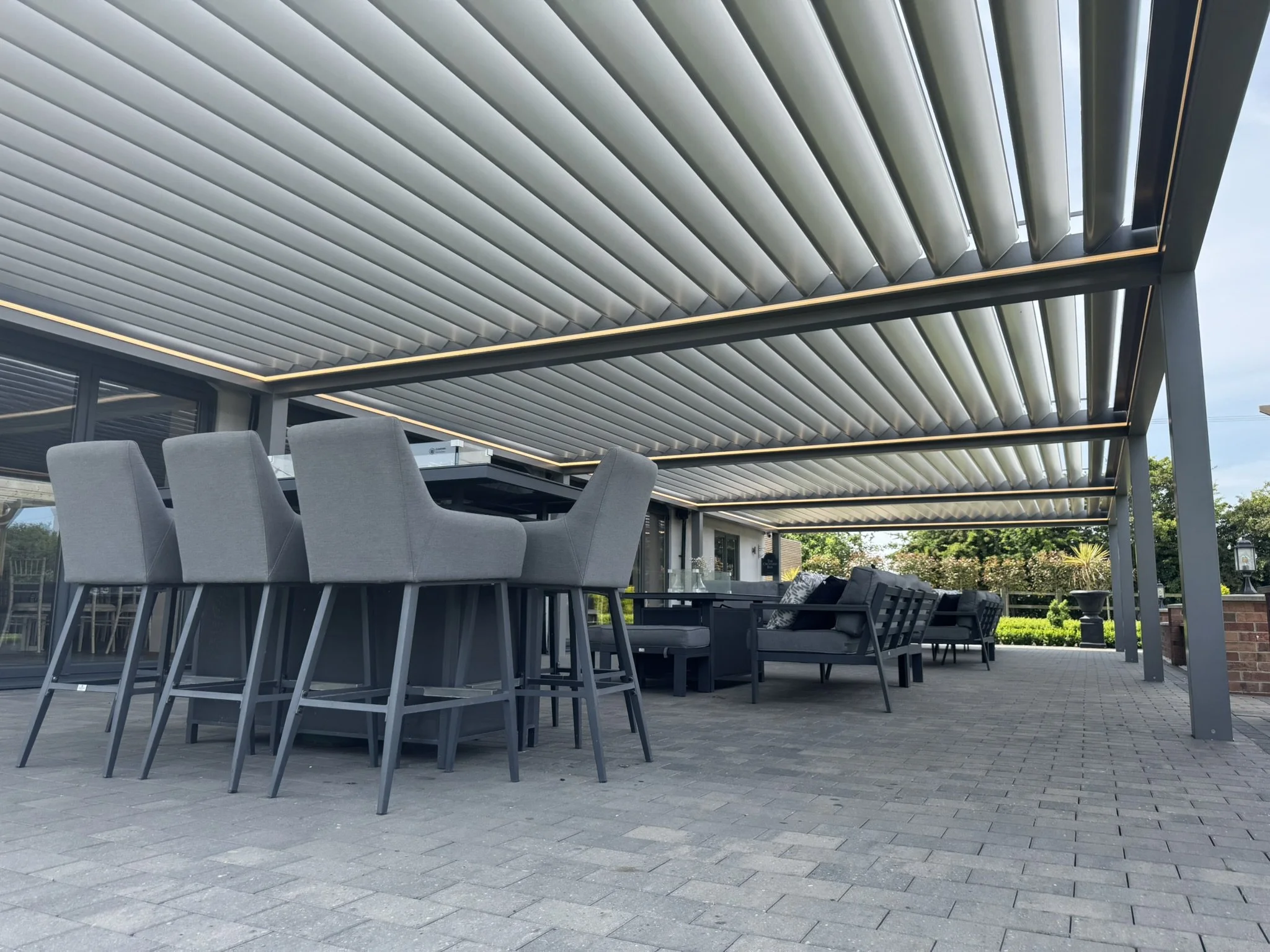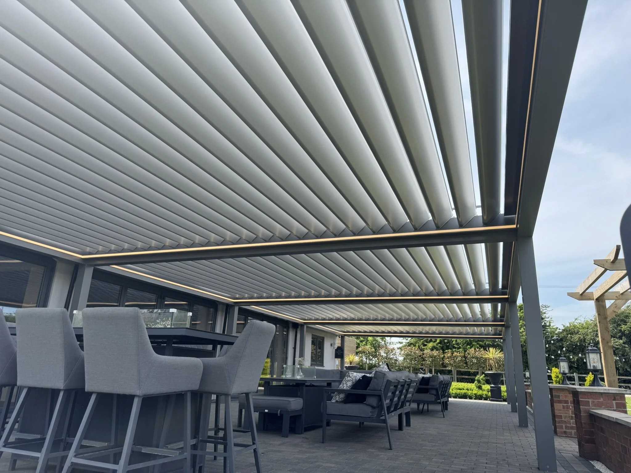 Louvered roof pergolas and retractable canopies are stylish, functional solutions designed for year-round outdoor living. Our louvered roofs feature rotating aluminium blades that adjust to control light, shade, and airflow while providing full waterproof protection when closed.